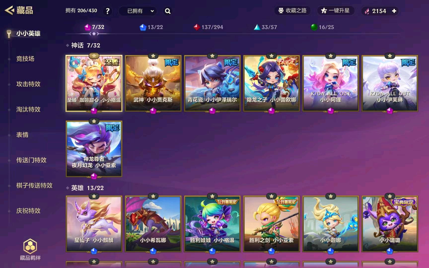 206小小英雄 | 7神话 | 至臻咖啡格温 | KDA阿狸伊芙琳 | 神龙亚索