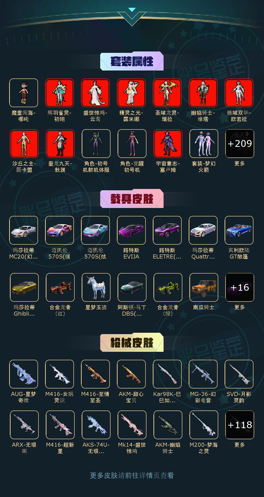 213粉,29载具,809套装,29王牌印记,无敌战神历史最高段,562333热力值 平底锅-仲夏莫吉托/平底锅-林间仙鹿/撬棍-永恒法杖/Famas-初号机 觉醒Ver./AKM-盖世英雄/AKM-甜心宝贝/SCAR-L-梦幻火箭/SCAR-L-童趣迷兔/AUG-星梦奇缘/AKM-绿萝繁花/M416-风花雪月/M416-电玩时刻/AUG-星之彼岸/SCAR-L-甜梦小狐/M416-全功率超战/GROZA-旋转彩虹/GROZA-巴啦啦小魔仙/GROZA-香水柠檬/M416-暖熊萌萌/AKM-幽焰骑士/AUG-南国舞曲/SCAR-L-天蓬元帅/Famas-觉醒初号机/M416-心之恋语/GROZA-超新星/M16A4-葫芦兄弟/M416-五爪金龙/M416-女娲灵识/M16A4-垂柳戏鸭/AKM-炫紫旋律/AKM-白勺歌姬/GROZA-精灵之光/M416-墨龙九天/GROZA-焦糖拿铁/GROZA-玉面桃花/SCAR-L-青春物语/SCAR-L-锦绣绵绵/M762-冷魅冰骑/AKM-百合蜜语/M416-至情至圣/AKM-星际浪客/AUG-妙趣可丽/M762-甜蜜誓约/AUG-超新星/M416-超新星/SCAR-L-万古烈焰/蜜獾-辉耀战甲/AKM-梦之光华/SCAR-L-魔童闹海 哪吒/ARX-无垠阁/蜜獾-异瞳寒姬/SPAS-12-蜜语绒猫/S12K-海渊国主/M417-第五大道/SKS-碧影闪光/Mk14-盛世惊鸿/Mk14-闲梦青缨/Mini14-荧光虫舞/SLR-暗夜玫瑰/MK20-H-海螺星光/Mini14-龙虾霸霸/DP-28-扶摇飞仙/M249-彩虹甜喵/MG3-辉羽雀灵/MG3-梦幻舞会/PKM-天星战神/MG3-炙焰牛王/MG3-酷泡奶龙/DP-28-枪炮玫瑰/DP-28-幻梦音符/M249-猪猪侠/DP-28-金蝉行者/DP-28-圣堂之誓/MG3-洛神天依/MG-36-幻彩电音/PKM-江南烟雨/M249-绒雪飘舞/DP-28-千金淑猫/M249-蓝莓炮弹/M249-绝对恒星/DP-28-豹影疾电/UZI-绮梦青鸾/P90-仙履奇缘/P90-电糖天使/汤姆逊-怪笑疯兔/UMP45-量子极限/Vector-红伞翩翩/P90-甜蜜草莓/P90-能量风暴/UMP45-宇宙意志/汤姆逊-荒漠赏金/P90-粉樱探戈/AKS-74U-星穹咏叹调/Vector-环太平洋/UZI-筑梦精灵/UMP45-雪国精灵/UMP45-相思残雪/野牛-青空秋雨/UMP45-恐龙拽拽/P90-沙丘之主/汤姆逊-冰川粉黛/UMP45-玉魂晶魄/UMP45-启明星/AKS-74U-无垠阁/P90-魔童闹海 敖丙/JS9-奇迹舞步/破片手榴弹-瓶中星球/破片手榴弹-美味星星糖/烟雾弹-电雾迷城/破片手榴弹-秋玉花灯/爆炸猎弓-拳皇·狂花道/烟雾弹-猫咪绅士/破片手榴弹-粉粉猫爪/AWM-平天焚空/AWM-璀璨巨星/Kar98K-伏魔团/Kar98K-圣域龙灵/AWM-花间之火/Kar98K-巳巳如意/Kar98K-圣光天使/AWM-橘柚倾心/M24-镜域双华/AMR-炫光之旅/M24-翩跹演武/M200-玉鳞金羽/Kar98K-未来歌姬/SVD-月影灵韵/M200-梦海之灵/Kar98K-暗翼战神/M24-星之信仰/M24-魔法神域/M24-莲影清波/玛莎拉蒂Ghibli(金)/特斯拉Roadster(沁心粉)/特斯拉Model 3(珍珠白)/阿斯顿·马丁DBS(绿)/特斯拉Model 3(奇幻紫)/特斯拉Roadster(水滴蓝)/玛莎拉蒂Quattroporte(幻星粉)/宾利欧陆GT敞篷(深空蓝)/萌喵橘座/路特斯ELETRE(电光紫)/南瓜骑士/拉轰鸭鸭车/鬼马风驰/快艇-塞莎KL27(霓虹粉)/合金龙骨(绿)/合金龙骨(红)/迈凯伦570S(炫冰蓝)/路特斯EVIJA(电光紫)/玛莎拉蒂MC20(幻星粉)/迈凯伦570S(镭射紫)/冰绡玉鳞/星梦玉骢/关羽赤兔马/赵云玉狮子马/照夜玉狮子/疾风龙骑/辉羽雀灵自行车/双人摩托-双刃魅影(红)/极速兔兔/踏焰逐风摩托车/