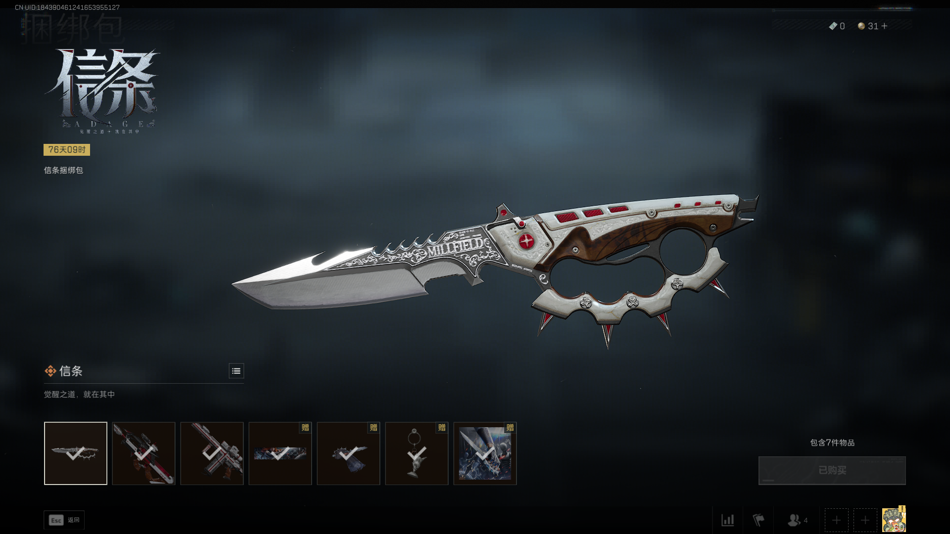 全红皮3刀皮|蚀金 水墨 戴什 午夜 黑天际线|信条捆绑包|北极星捆绑包|黑海捆绑包