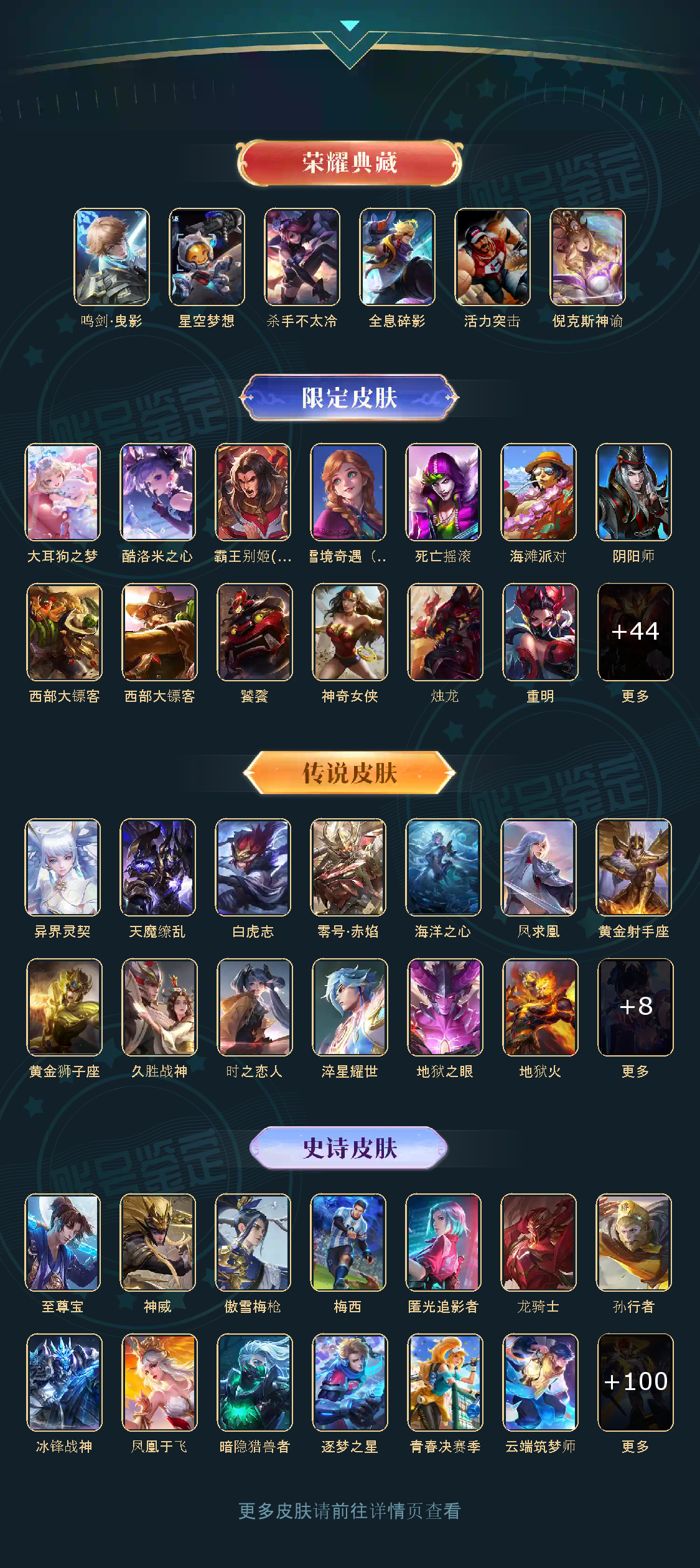 贵族等级V10,英雄数量125,典藏皮肤数6,皮肤数量367,冰锋战神街头霸王天魔缭乱至尊宝杀手不太冷凤求凰神奇女侠星空梦想梅西黄金狮子座一生所爱全息碎影大圣娶亲冰霜恋舞曲青龙志白虎志朱雀志活力突击久胜战神飞衡倪克斯神谕匿光追影者鸣剑·曳影武圣奔雷神使孙行者玉兔公主异界灵契神威傲雪梅枪淬星耀世