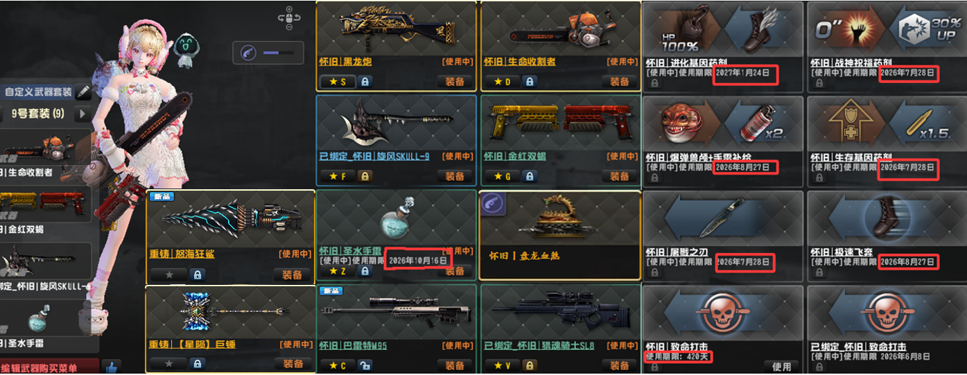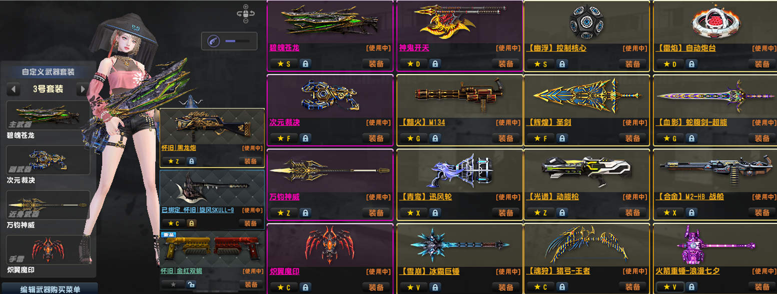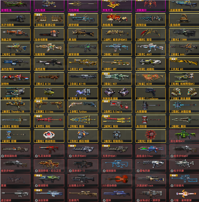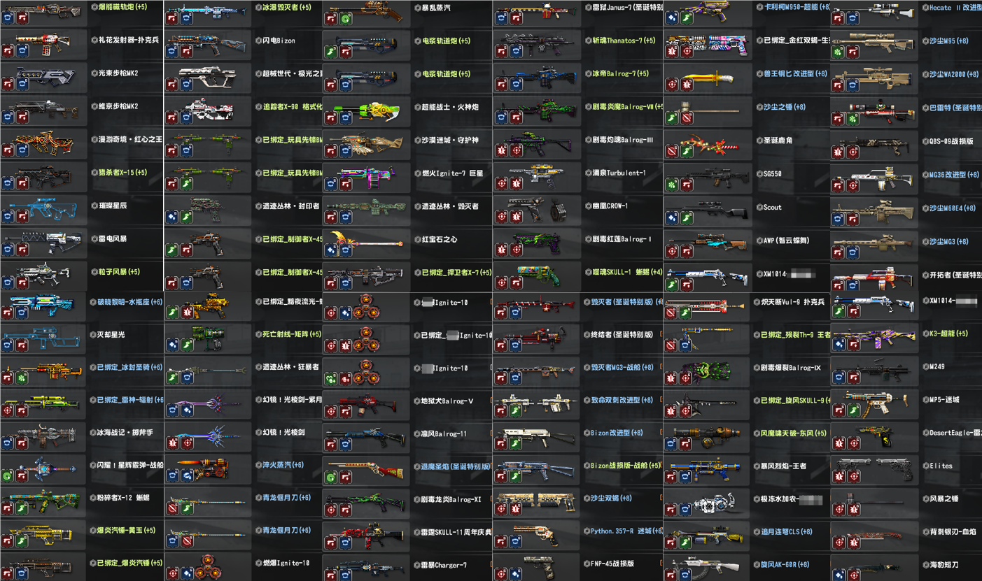 3.怀旧三件套黑龙炮,斧头,金红双蝎!闪电MK3A1汽锤,重炮光束MK1和2,维京全套(联动星梦炽焰),6攻闪电野牛Bizon!(联动十五),幽浮无人机(联动管家和伯爵)冰锤(联动金火星)!强化配件武器(见图4),强化武器全满,主要配件武器全部6攻,其他最少5阶。已去黑雾!