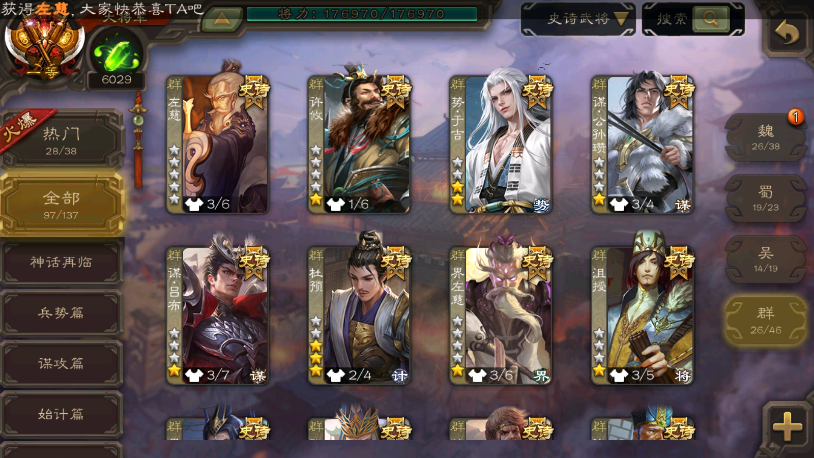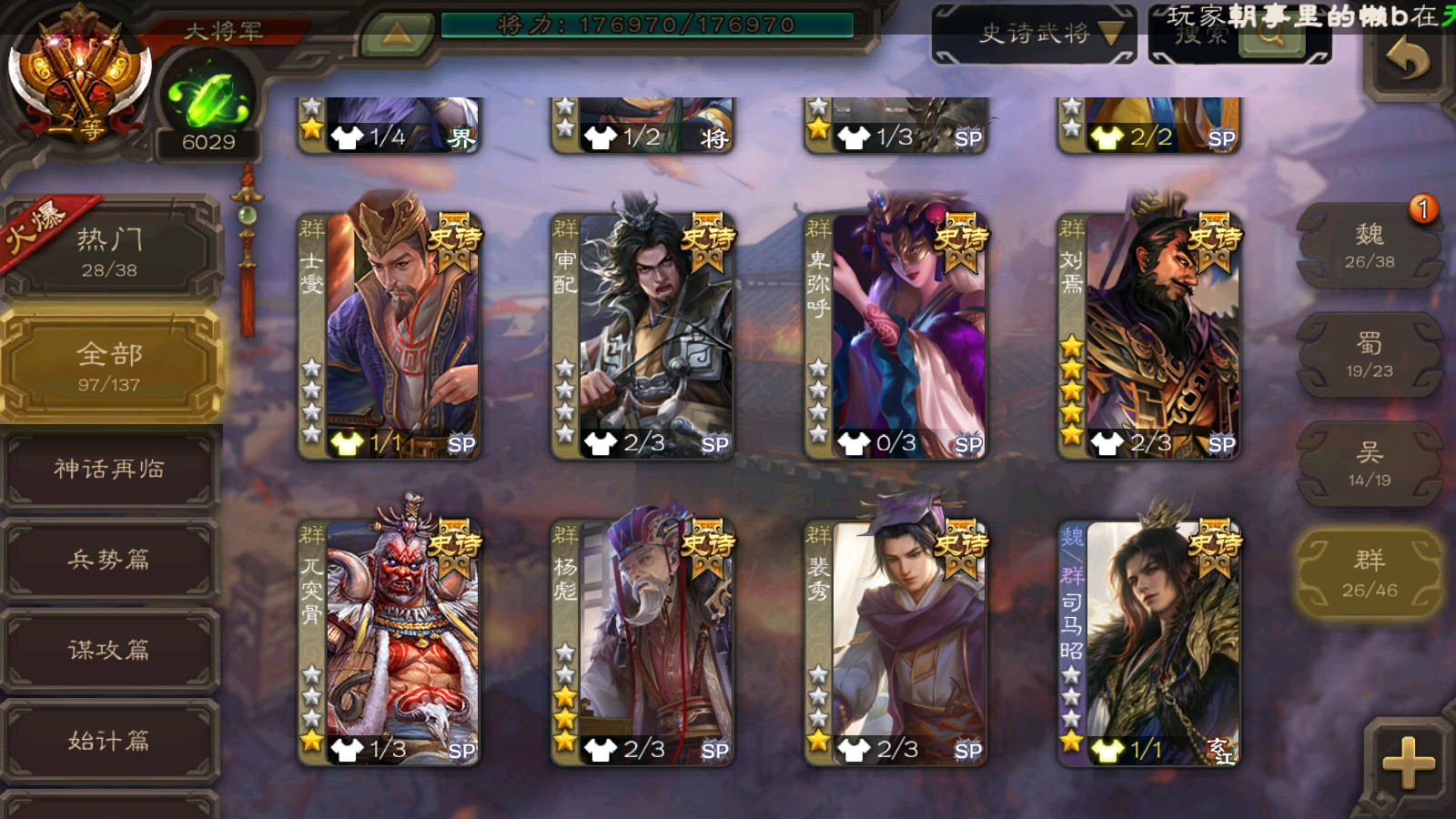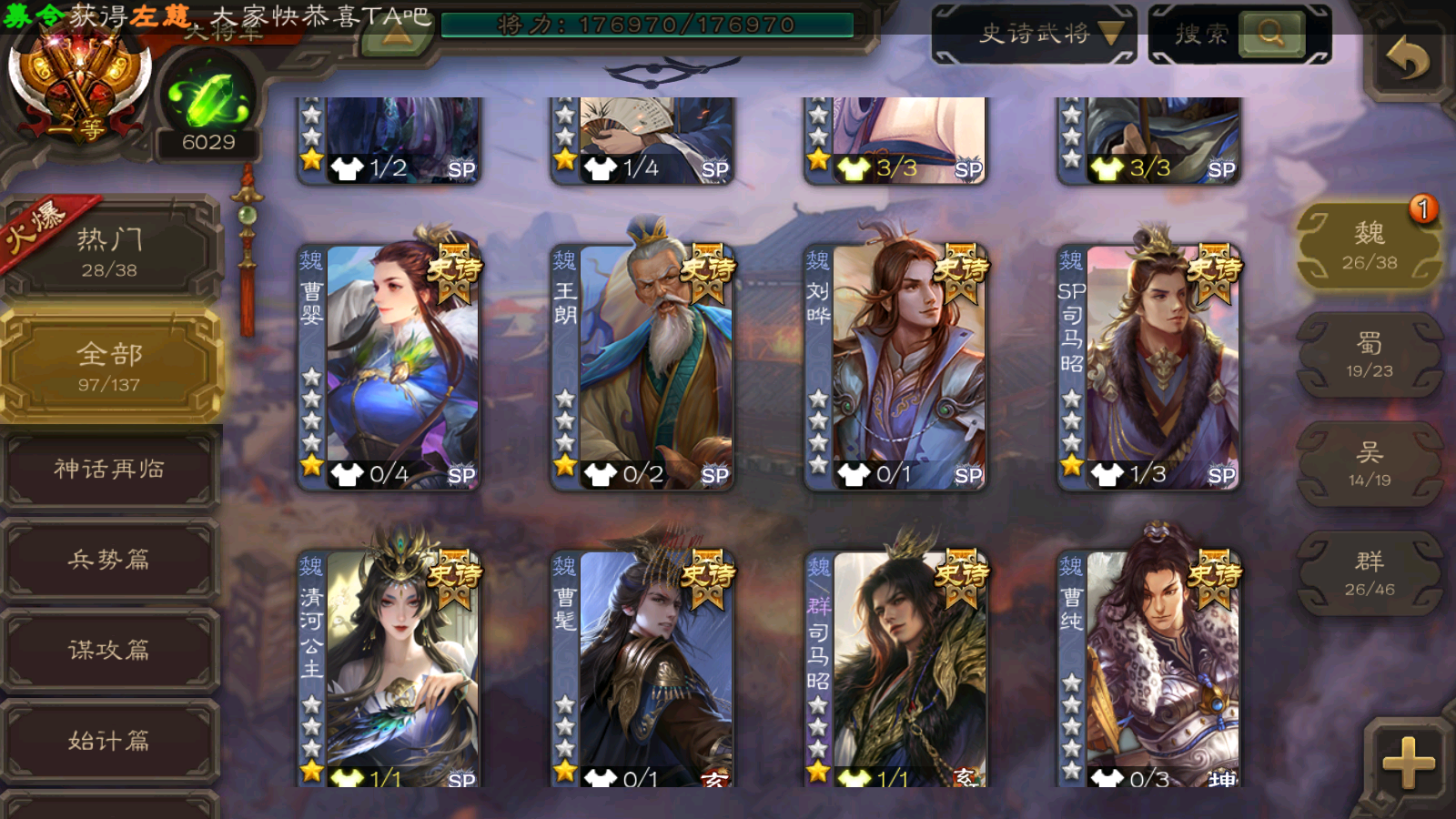 【全平台】 【锦鲤有卡】有花三卡97史诗崔芙势魏延双动刘焉回廊张奋至尊十常侍曹髦全神势太史慈势于吉友诸葛