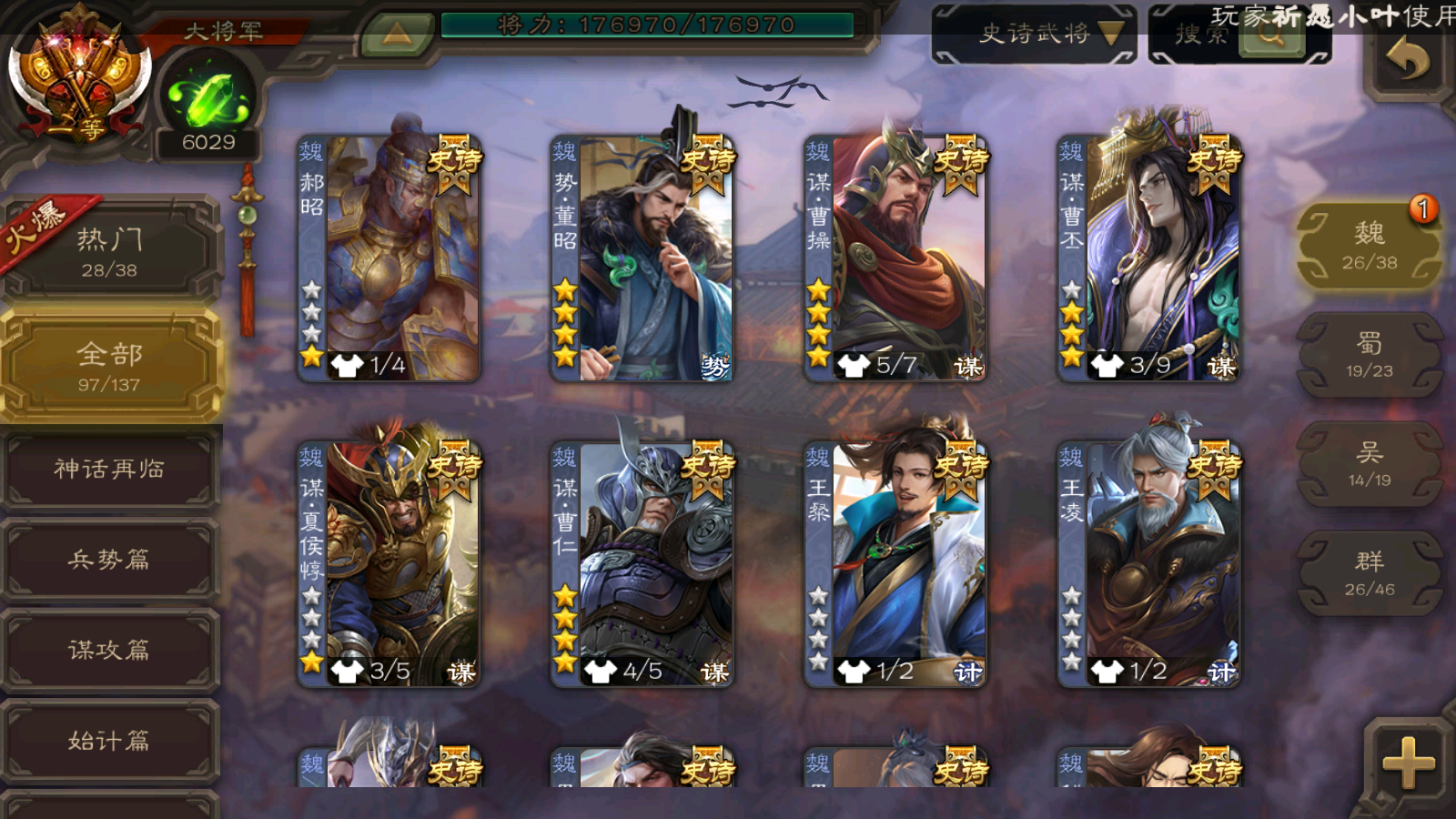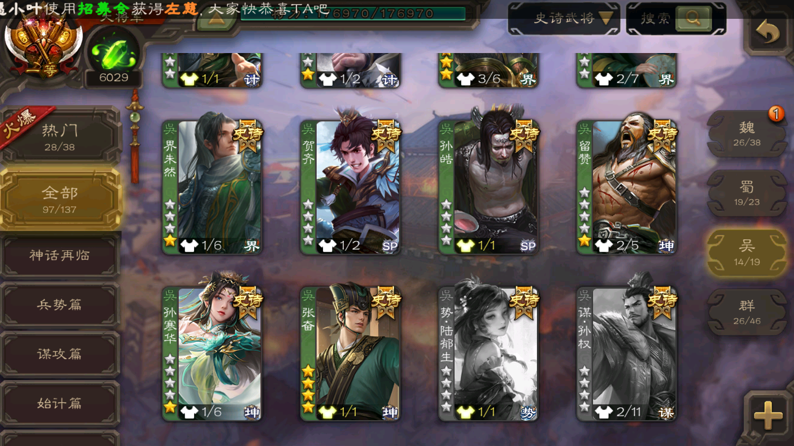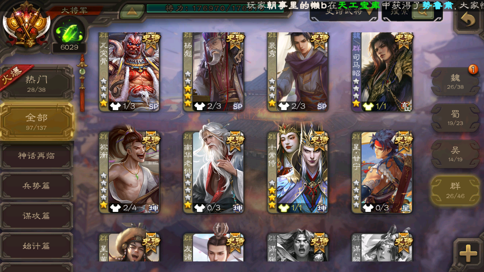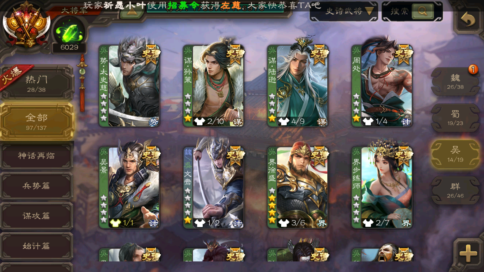 【全平台】 【锦鲤有卡】有花三卡97史诗崔芙势魏延双动刘焉回廊张奋至尊十常侍曹髦全神势太史慈势于吉友诸葛