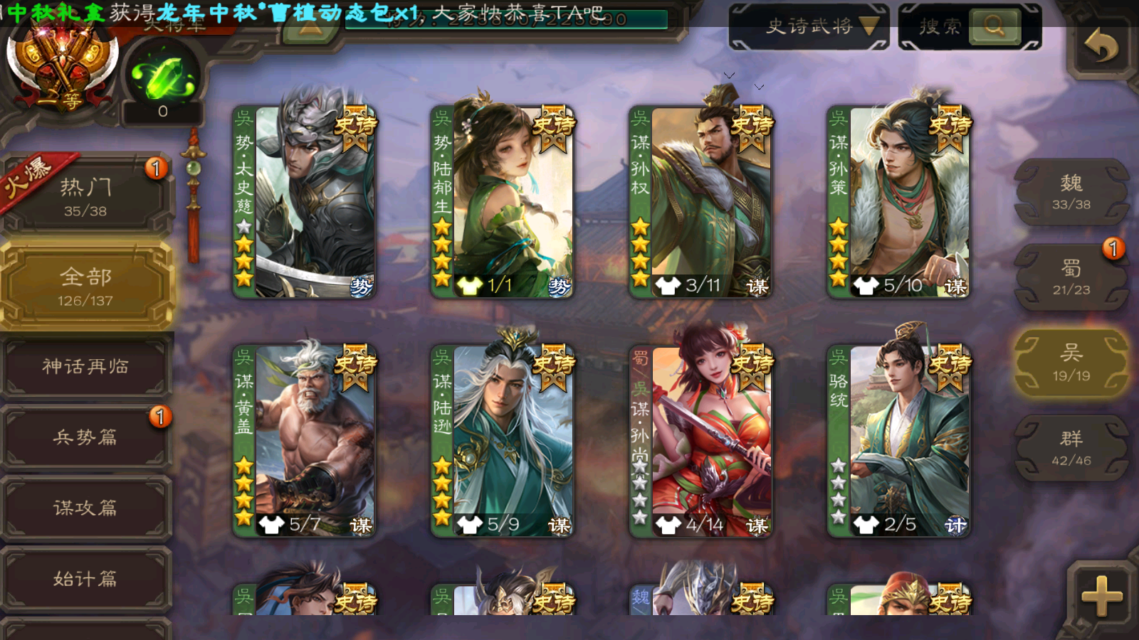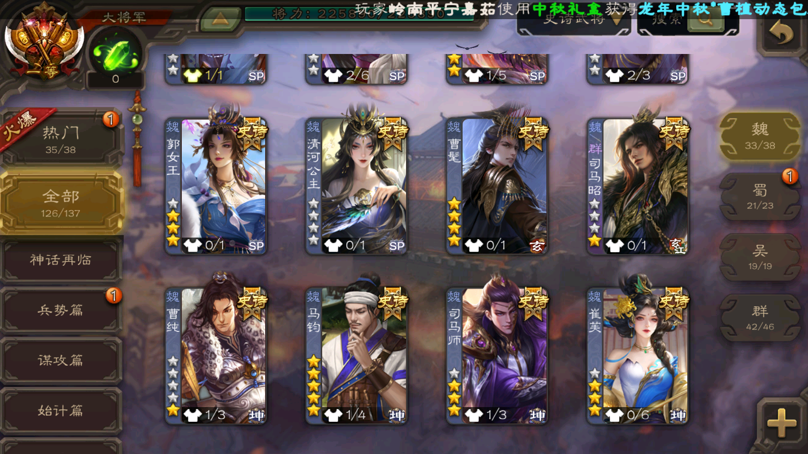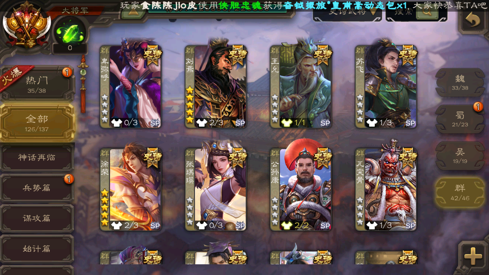 【全平台】 【锦鲤有卡】三卡126史诗崔芙势魏延双动刘焉势国渊至尊(杜预谋关羽谋孙策神郭嘉钟会)势太史慈
