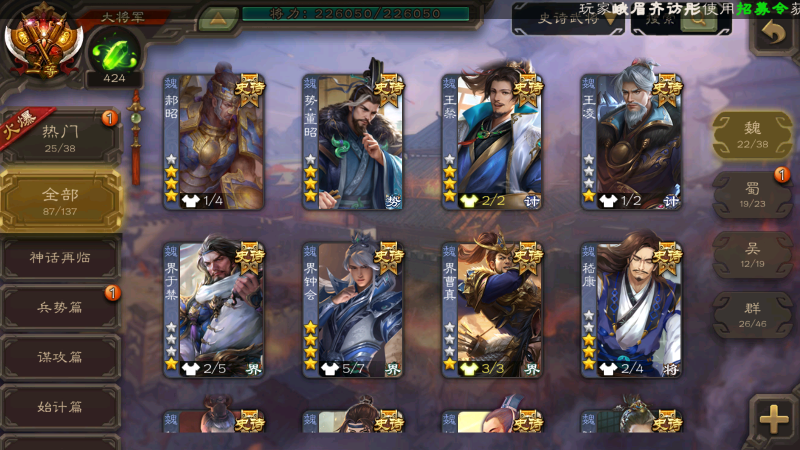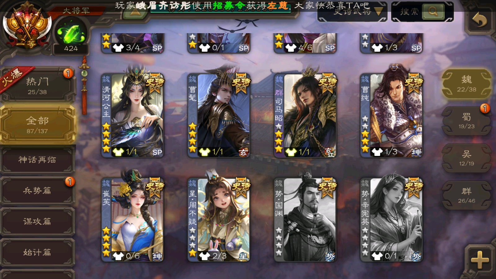 【全平台】 【锦鲤有卡】三卡87史诗崔芙势魏延动刘焉手办三娘至尊曹髦至尊神郭嘉神司马懿势董昭谋貂蝉谋诸葛