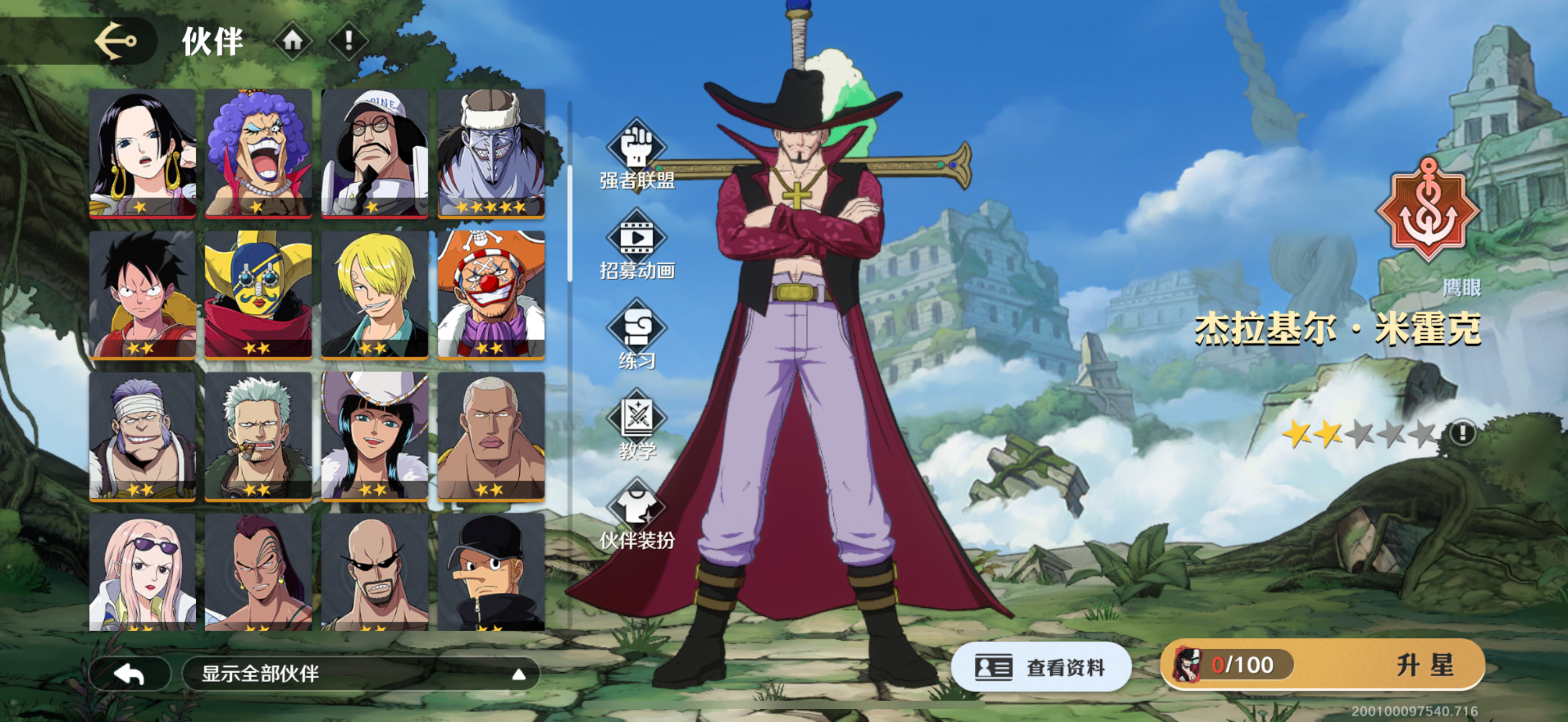 13红女帝黄猿大熊❤️罗莫利亚龙马路奇弗兰奇司法岛路飞青雉艾尼路艾斯卡普鹰眼老沙司法岛索隆,战力低不玩战力,只收集角色
