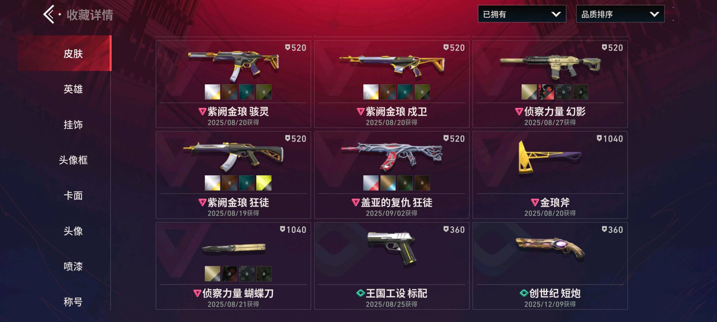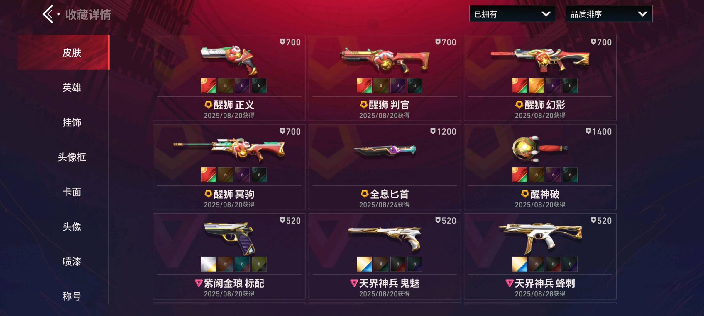 【全平台】 侦查幻影✅紫金套✅醒狮套✅侦查蝴蝶刀✅天界神兵鬼魅✅盖亚狂徒✅24级收藏家✅收藏持续更新
